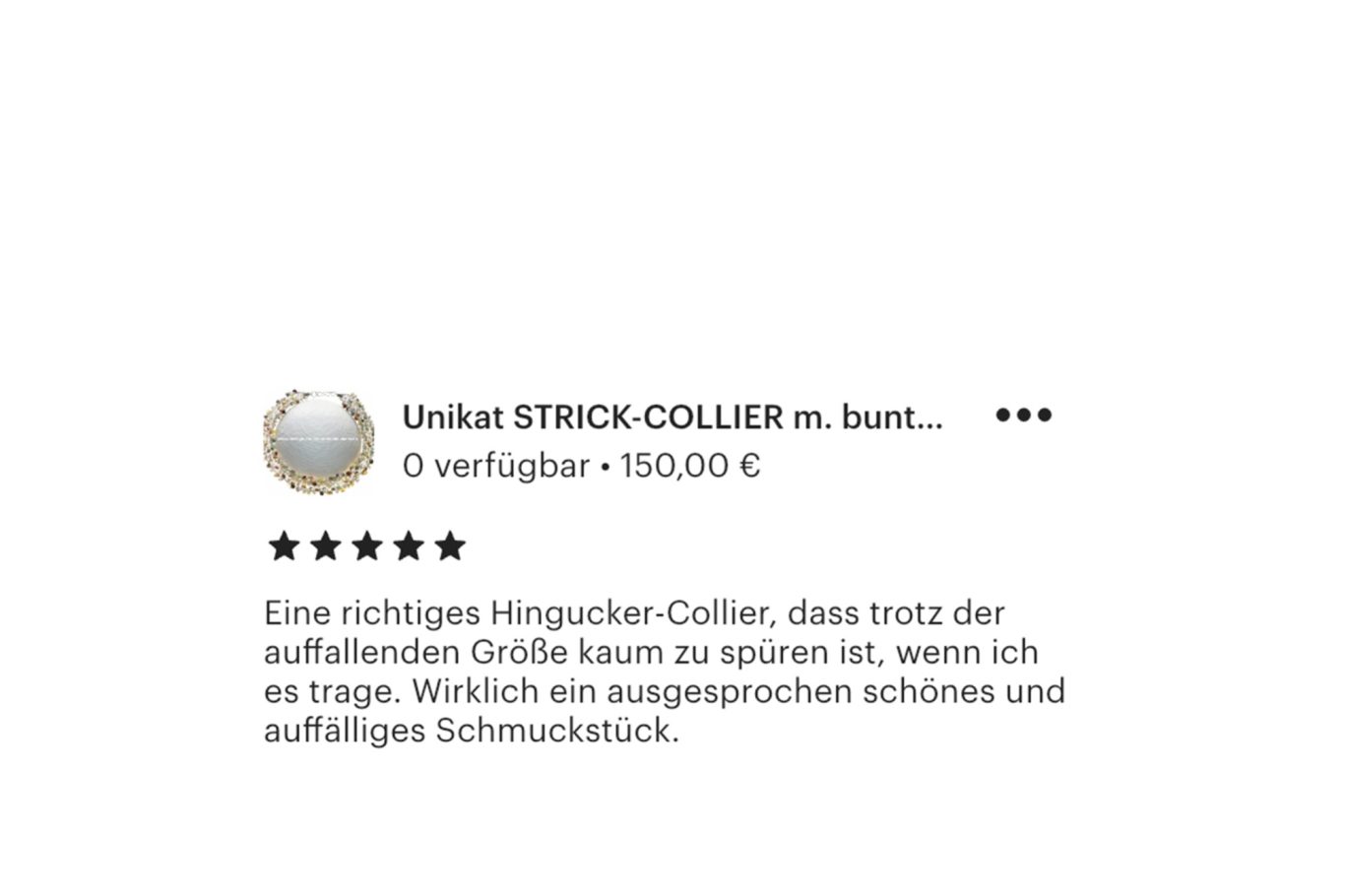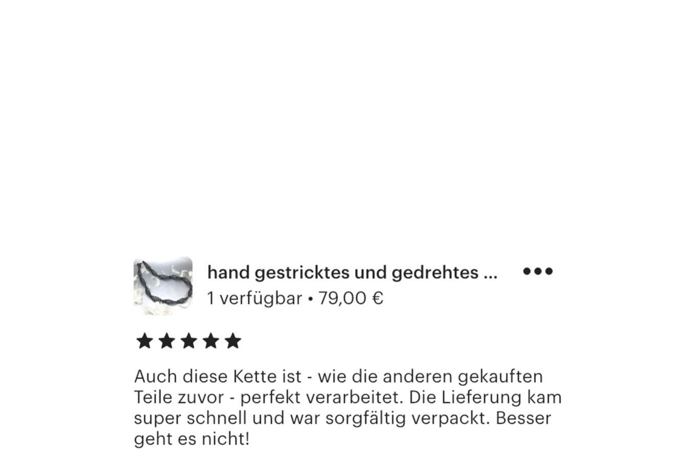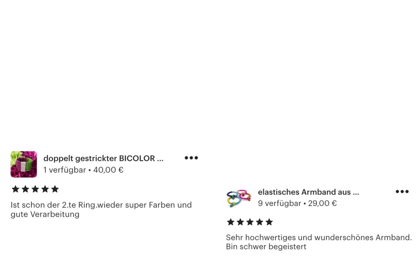 Auch Papiergarn lässt sich mit speziellen Schmuck-Stricklieseln sehr gut verstricken und wird in meinem Shop als Armbänder und Ketten in verschiedenen Längen und Stärken angeboten.